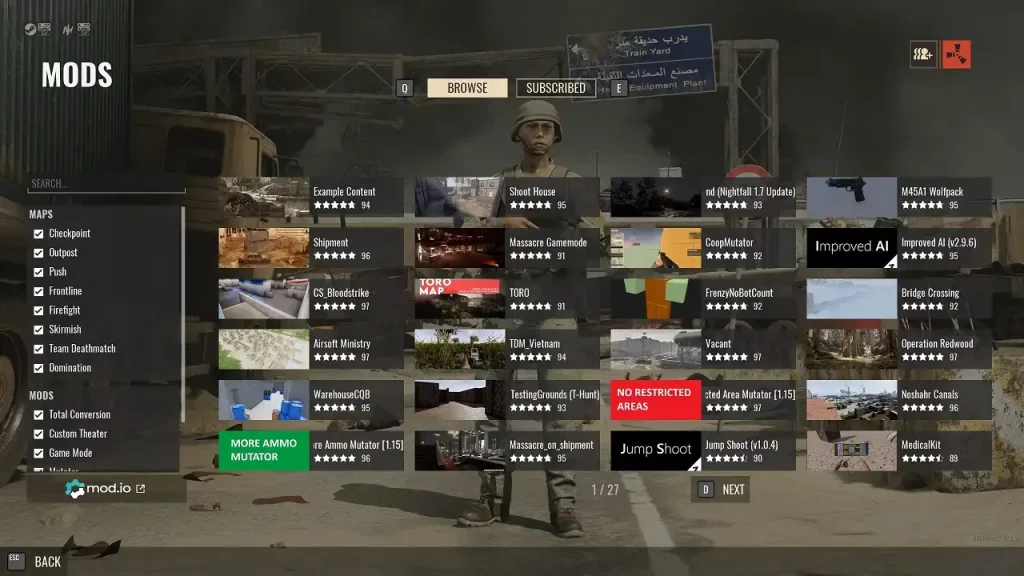 Players can access many available mods through the game's main menu. Here, players can simply select a mod and install it directly. Alternatively, Insurgency: Sandstorm server administrators can also contact our support staff for modding assistance.