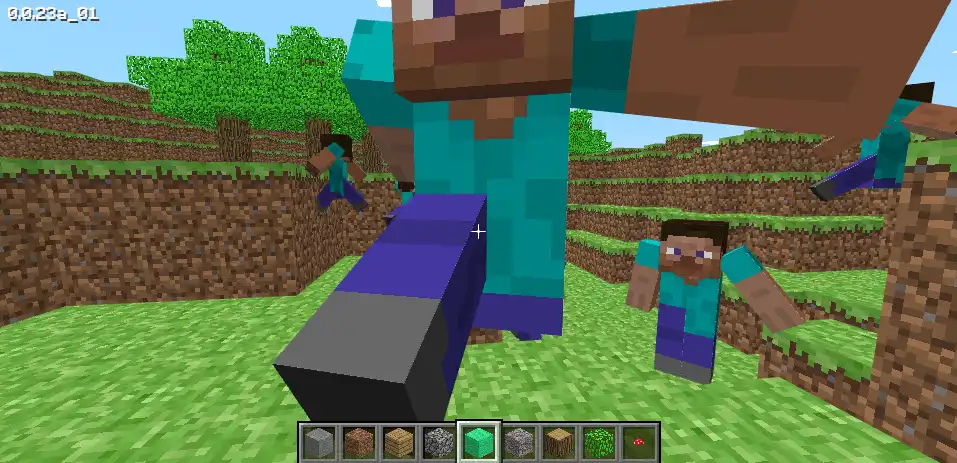 Yes, you read that correctly. There were once human mobs! They do nothing but run around frantically, which I would argue is quite realistic. They are also squished looking due to a bug. A pretty fun sight to see when you spawn a whole bunch. Humans are the only mob found in Browser Edition.